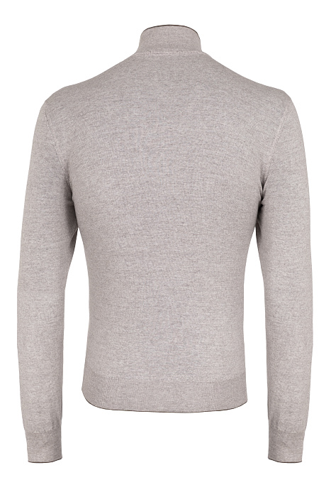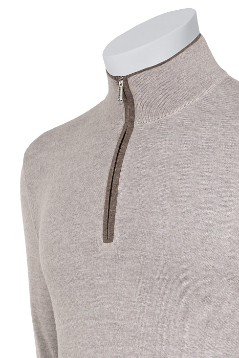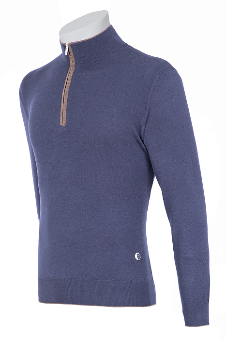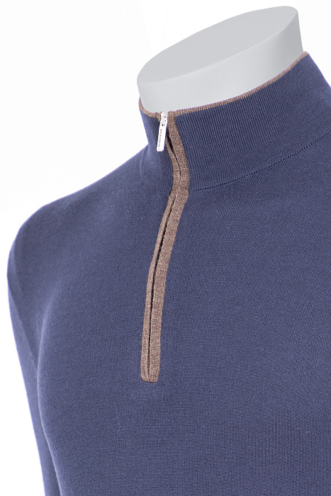 Bertolo-ի կայծակաճարմանդով ջեմպեր՝ պատրաստված մաքուր բրդից՝ իտալական հյուսման տեխնիկաներով։ նրբագեղ կառուցվածքը լրացված է օձիքի և կայծակաճարմանդի հատվածի էլեգանտ կոնտրաստային մշակմամբ՝ իդեալական ընտրություն առօրյա կամ շերտավոր կերպարների համար։
