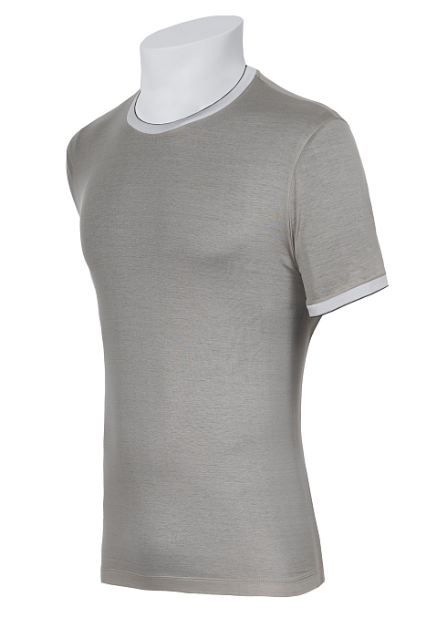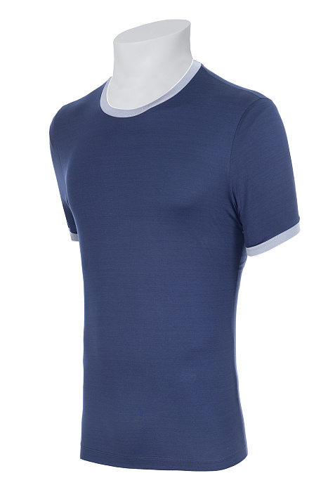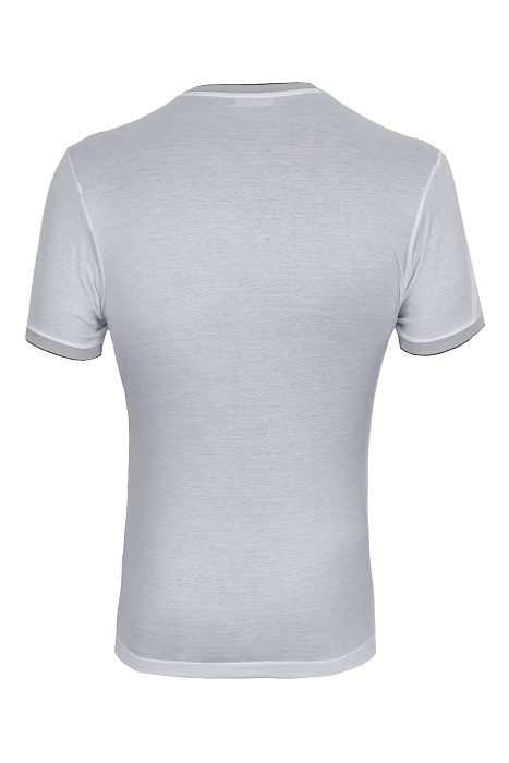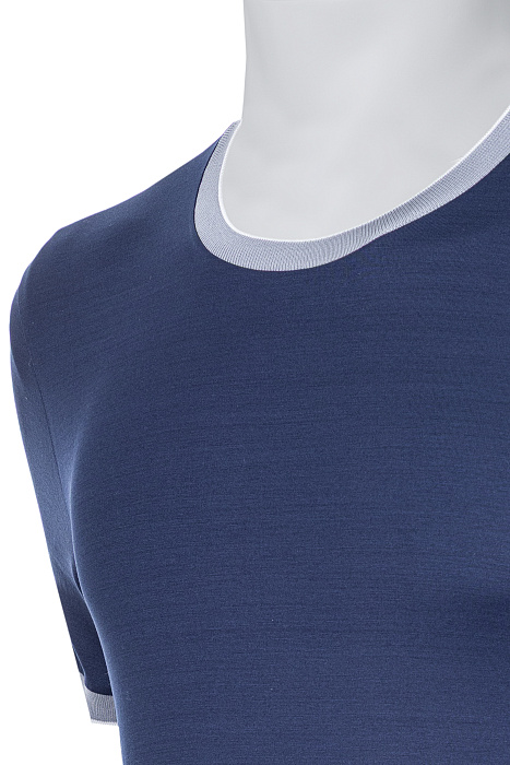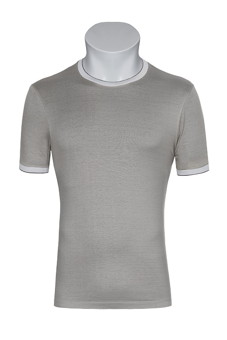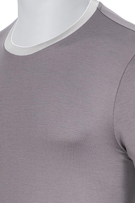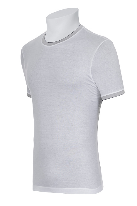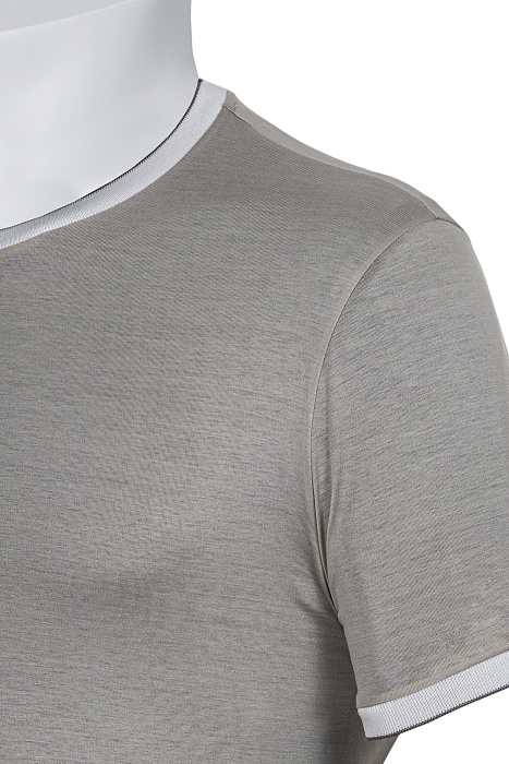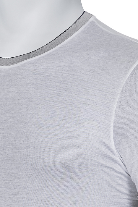 Կլոր վզկտրվածքով շապիկ՝ պատրաստված բարձրակարգ ֆիլոսկոզիա բամբակից, հարթ տրիկոտաժային հյուսվածքով, կոնտրաստ էլաստիկ օձիքով և թևքավարտներով, ինչպես նաև մաքուր կառուցվածք ունեցող սիլուետով՝ նրբաճաշակ առօրյա կերպարի համար։
