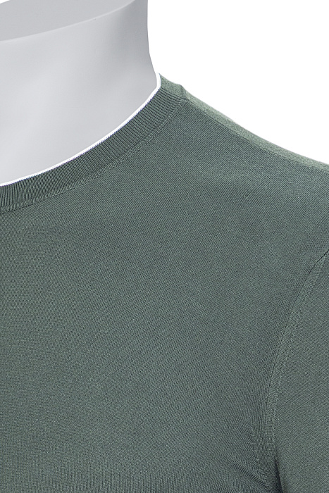 Կարճաթև տրիկոտաժե շապիկ՝ կլոր վզակտրվածքով, պատրաստված նուրբ բամբակից, հարթ հյուսվածքով, կոկիկ ռիբանայով օձիքով և հակադիր եզրային դետալներով թևքերին ու ներքևի հատվածում՝ նրբաճաշակ ամենօրյա կերպարի համար։