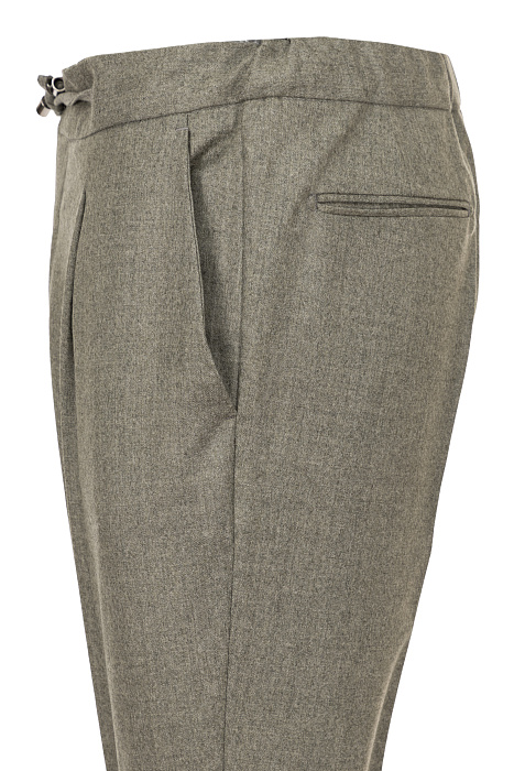 Borrelli բրենդի էլեգանտ տաբատ՝ պատրաստված 100% բրդից, առանձնանում է նուրբ ձևվածքով և հարմարավետ գոտիով։ Համակարգված մոդել, որը միավորում է ժամանակակից սիլուետն ու բնական բրդի փափկությունը։