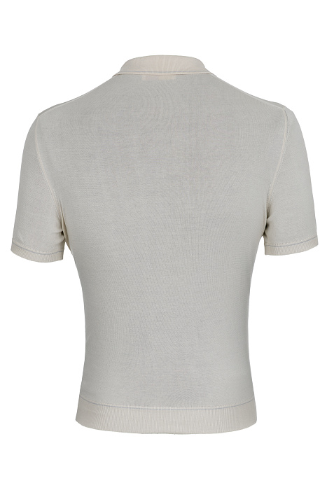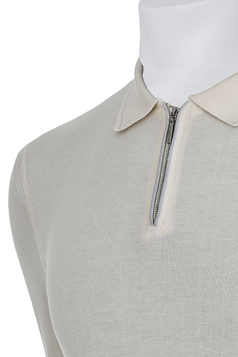 Կայծակաճարմանդով պոլո՝ պատրաստված բարձրակարգ ֆիլոսկոզիա բամբակից, մաքուր կառուցվածք ունեցող օձիքով, նուրբ տրիկոտաժային հյուսվածքով և կոկիկ էլաստիկ եզրագծերով՝ մինիմալիստական նրբաճաշակ կերպարի համար։