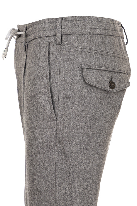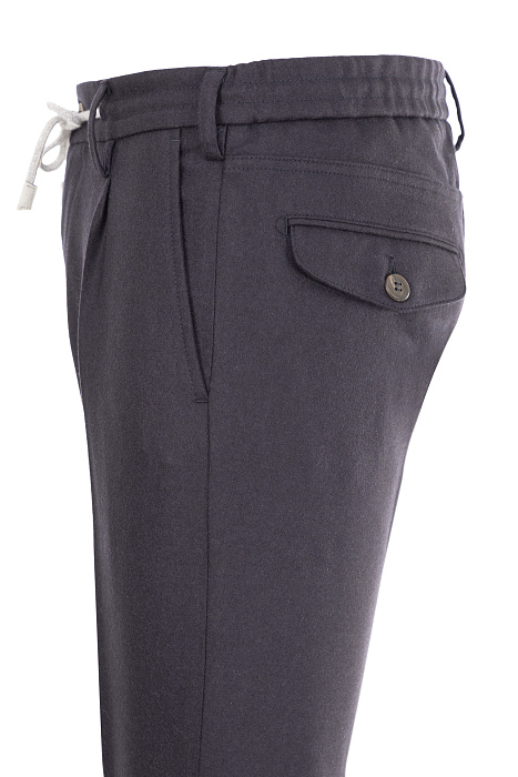 Eleventy բրենդի տաբատը պատրաստված է բարձրորակ կտորից՝ 90% բուրդ, 8% քաշմիր և 2% էլաստան։ Գոտին լարով և նեղացված ձևվածքը համադրում են կոստյումային տաբատի նրբագեղությունը և առօրյա հարմարավետությունը։