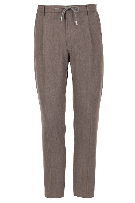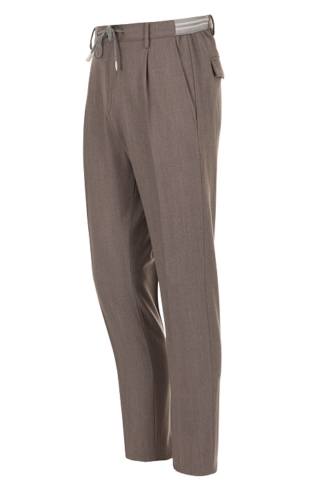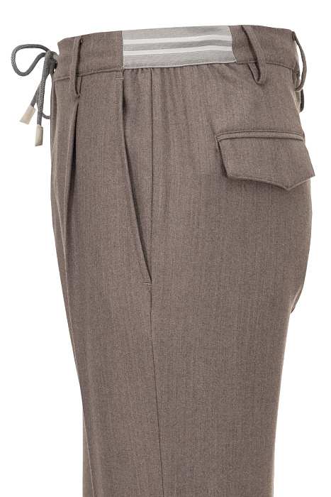 Eleventy բրենդի տաբատը պատրաստված է բարձրորակ կտորից՝ 96% բուրդ և 4% էլաստան։ Գոտին՝ լարով, և հետևի փեղկավոր գրպանները մոդելին հաղորդում են նրբագեղ ուրվագիծ և առօրյա հարմարավետություն։