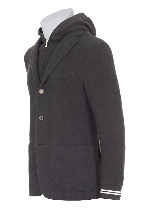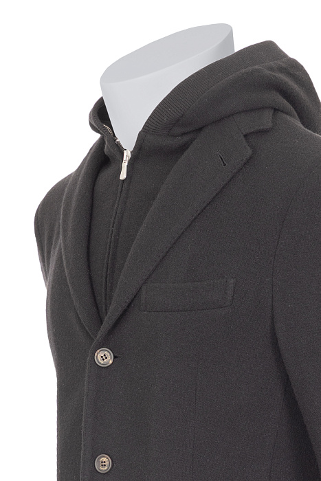 Eleventy-ի այս բաճկոնը համադրում է ամենօրյա հարմարավետությունն ու դասական նրբագեղությունը՝ լրացվում է ներքին ներդիրով՝ գլխարկով, որը ստեղծում է ժամանակակից շերտավոր տեսք։ Պատրաստված է բամբակի (54%), կաշմիրի (35%) և պոլիամիդի (11%) խառնուրդից՝ ապահովելով թեթևություն, կառուցվածքային ձև և իտալական նրբաճաշակություն։
