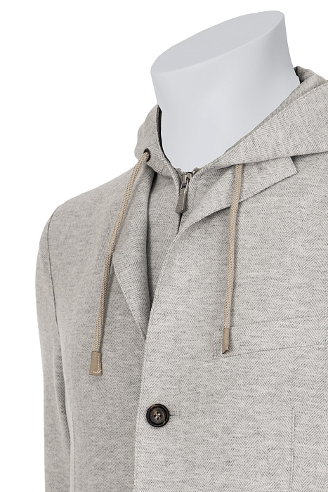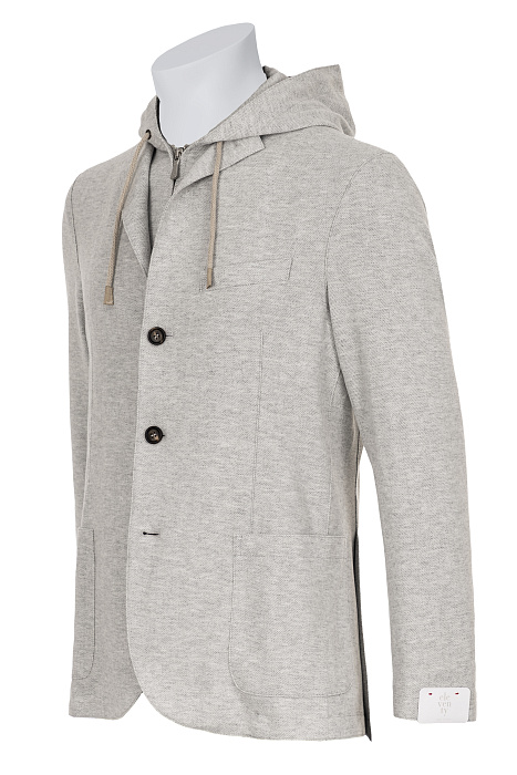 Eleventy-ի այս բաճկոնը մարմնավորում է ժամանակակից նրբագեղությունը՝ համադրելով դասական բլեյզերի ձևավորումն ու լրացվում է ներքին ներդիրով՝ գլխարկով։ Պատրաստված է 55% պոլիեսթերից, 29% վիսկոզայից, 14% պոլիամիդից և 2% էլաստանից բաղկացած փափուկ ու ձգվող կտորից՝ ապահովելով հարմարավետություն և բազմակողմանիություն ամենօրյա նրբաճաշակ կերպարների համար։