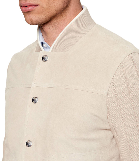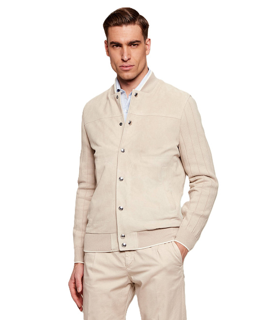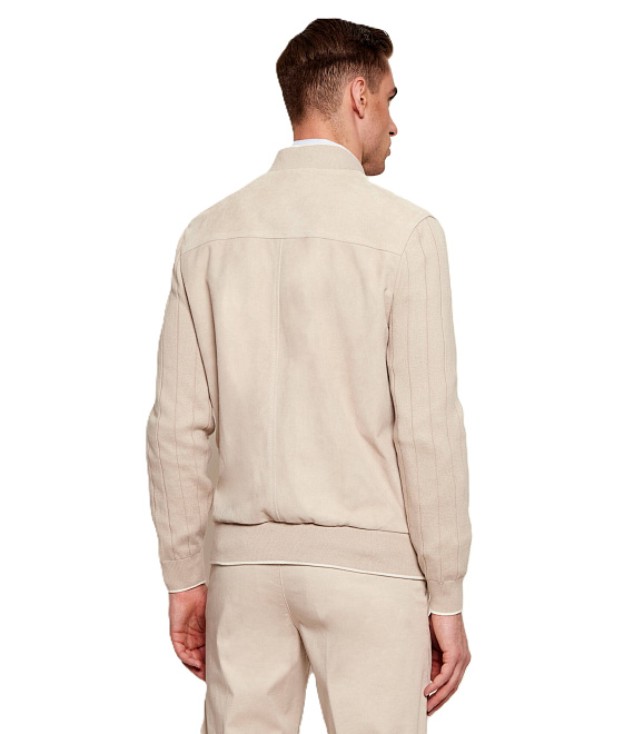 Eleventy բոմբեր բաճկոն՝ ժամանակակից ուրվագծով, պատրաստված բարձրակարգ նյութերից՝ իտալական վարպետությամբ, համադրելով տրիկոտաժե և գործվածքային կառուցվածքները՝ ապահովելով հարմարավետություն, բազմակողմանիություն և նրբաճաշակ ամենօրյա տեսք։