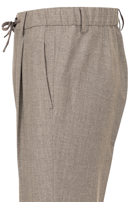 Herno-ի տաբատները պատրաստված են շքեղ խառնվածքից՝ 78% բուրդ, 13% վիսկոզա, 5% մետաքս, 3% էլաստան և 1% այլ մանրաթելեր։ Կարգավորվող գոտիով մոդելը միավորում է նուրբ ձևը և բացառիկ հարմարավետությունը՝ իդեալական դարձնելով այն ժամանակակից առօրյայի համար։
