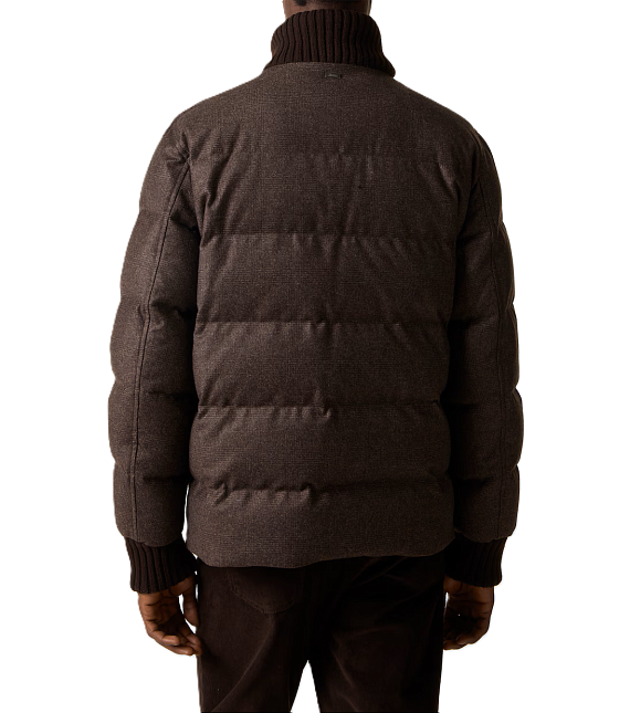 Herno-ի բաճկոնը, պատրաստված բուրդ-կաշմիր խառնուրդից եւ մոդելավորված ստёжկացված կառուցվածքով, միավորում է բարձրորակ նյութերի ջերմությունն ու փափկությունը նրբերանգ կտրումով։ Այն հարմարավետության եւ շքեղության արանքում է գտնվում՝ իդեալական ընտրություն բարձրակարգ ձմեռային կերպարի համար։