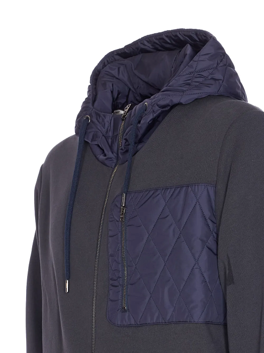 Herno-ի quilted սպորտային բաճկոնը միավորում է դինամիկ ձևավորումն ու տեխնիկական նյութերը՝ ապահովելով շարժման ազատություն և շերտային հարմարավետություն։ Cargo տիպի տաբատները լրացնում են կերպարը գործնական գրպաններով, էլաստիկ գոտիով և մաքուր, բարձրորակ ավարտով։