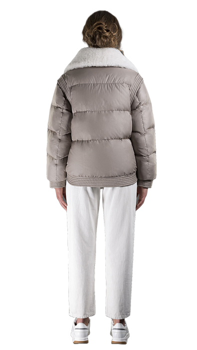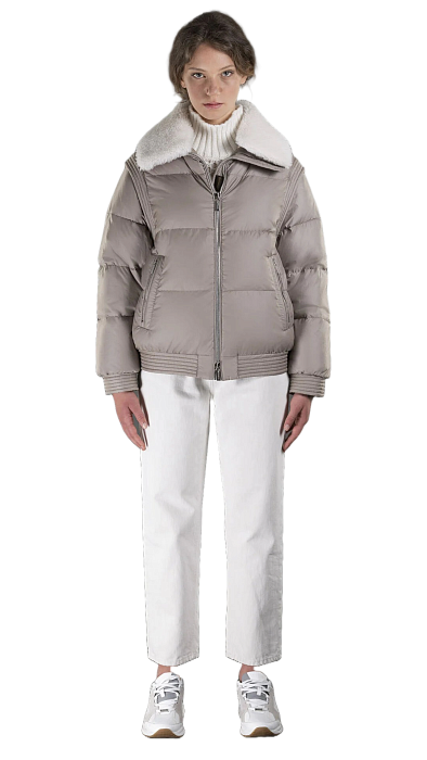 Այս նրբագեղ MooRER բաճկոնը պատրաստված է 100% պոլիամիդից՝ ապահովելով թեթևություն, դիմացկունություն և եղանակային պաշտպանություն։ Հեռացվող բրդե օձիքով և փոխարկվող թևքերով մոդելը միավորում է հարմարավետությունը և ժամանակակից ոճը։