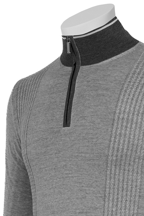 Pashmere-ի 100% մետաքսյա բրդից պատրաստված կիսափակ օձիքով բաճկոն։ Կողային ռելիեֆային հատվածներն ու ավարտային գծերը շեշտադրում են հագուստի նրբագեղությունն ու կառուցվածքը։Հիանալի տարբերակ է ինչպես առօրյա, այնպես էլ ավելի պաշտոնական կերպարների համար։