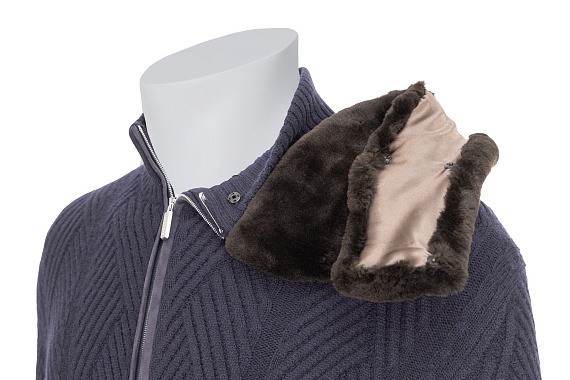 Այս Pashmere բաճկոնը ներկայացնում է իտալական վարպետության բարձր մակարդակ՝ նուրբ երկրաչափական հյուսքով և հանվող մորթյա օձիքով։ Պատրաստված է բորդի (70%) և կաշմիրի (30%) խառնուրդից՝ ապահովելով փափկություն, ջերմություն և նրբագեղ սիլուետ։