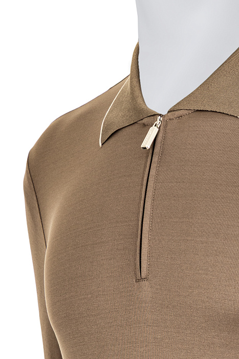 Pashmere պոլո՝ կայծակաճարմանդով օձիքով և նուրբ ընդգծող ուրվագծով, պատրաստված Իտալիայում բարձրակարգ թեթև տրիկոտաժից՝ ապահովելով հարմարավետություն, փափկություն և զուսպ նրբագեղություն։