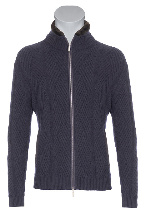 This Pashmere cardigan showcases exceptional Italian craftsmanship with a refined geometric knit pattern and a detachable fur collar. Made from a blend of 70% wool and 30% cashmere, it offers supreme softness, warmth, and an effortlessly elegant silhouette.