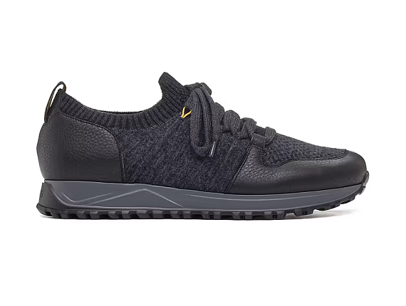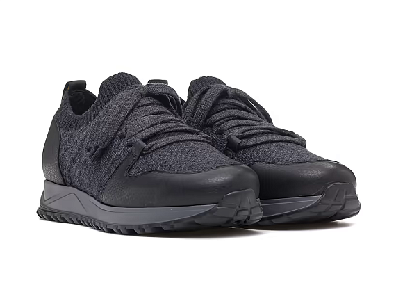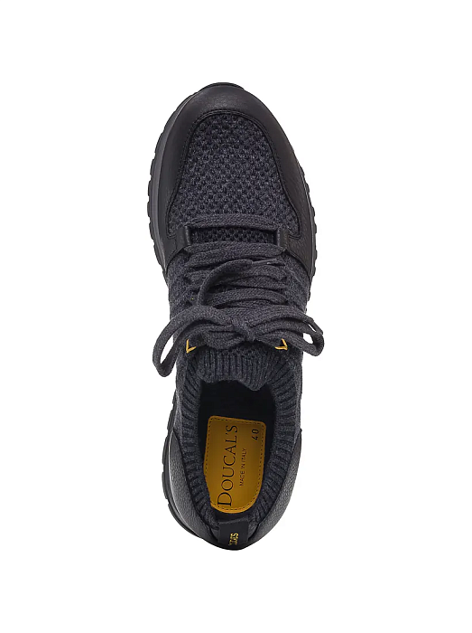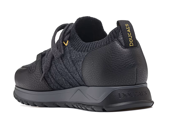 Men’s sneakers by Doucal’s, combining Italian craftsmanship with modern functionality. The upper is constructed from a mix of knit fabric and grained leather for optimal comfort and structure. The elastic ribbed collar ensures a snug, sock-like fit, while the robust rubber sole provides excellent grip and all-day wearability. A sophisticated take on everyday sporty footwear—versatile enough for travel, leisure, or casual city looks.
