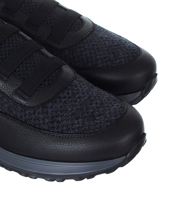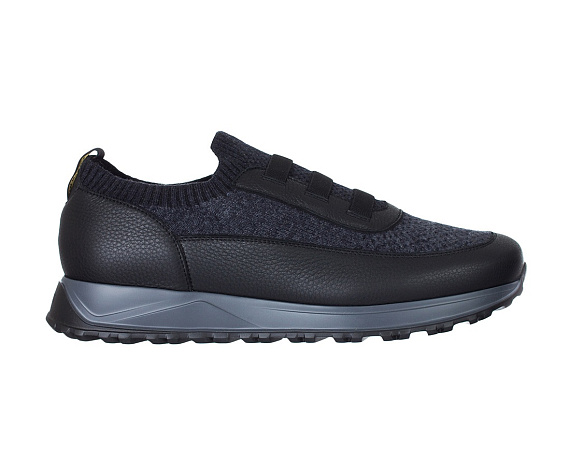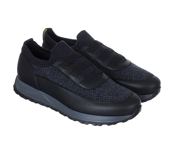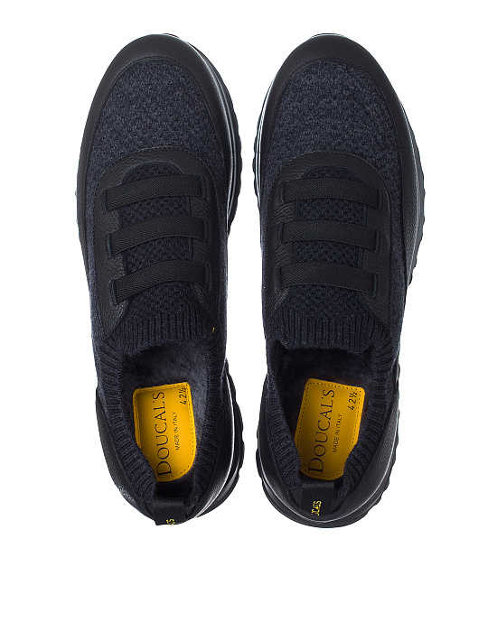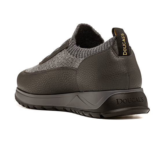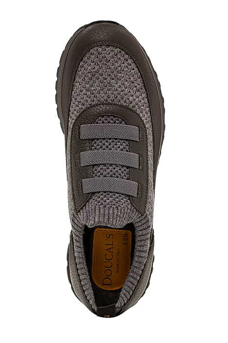 Men’s slip-on sneakers by Doucal’s, made in Italy. Designed for modern urban living, this model features a knitted textile upper with embossed leather panels that provide structure and durability. Set on a treaded rubber sole for added comfort and grip. A versatile style for casual outfits and daily wear.