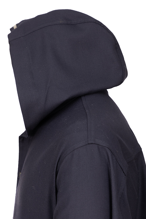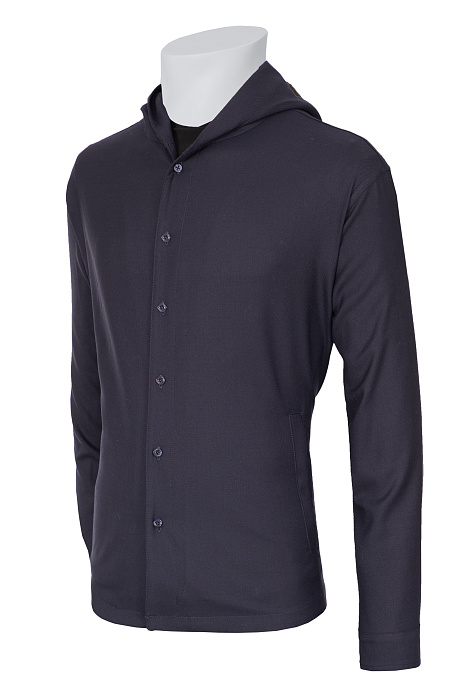 Knitted shirt-style hoodie by Herno crafted from a soft wool-viscose blend with added polyester and elastane for structure and flexibility. Features a button-down front, long sleeves, and a comfortable hood. A lightweight and versatile layering piece designed for both casual and urban outfits.
