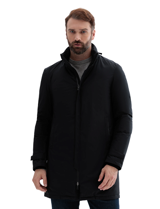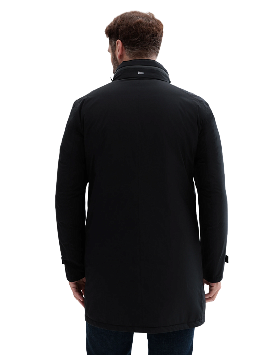 Minimalist urban elegance meets high-performance outerwear in this long padded coat by Herno. Designed using the brand’s exclusive Pro-Meteo® fabric, it is lightweight, windproof, waterproof, and breathable — perfect for demanding city life and unpredictable weather. The clean silhouette, concealed front zipper, high collar, and adjustable cuffs complete its modern functional style. A smart outerwear staple for the contemporary man.